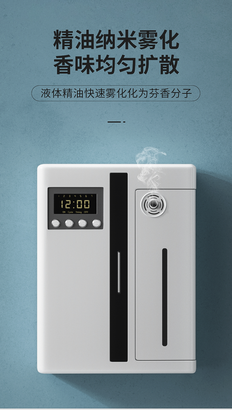 產(chǎn)品功效:采用國(guó)際先進(jìn)的二流體霧化技術(shù),將精油快速霧化成納米級(jí)顆粒,可以更快地將精油的芬芳分子快速擴(kuò)散至各個(gè)角落,芬芳持久。適合各種場(chǎng)合密閉環(huán)境,空氣不流通,各種味道紛至沓來(lái),使用了加香機(jī),頓時(shí)充滿了清香淡雅的芬芳,令人心情愉悅,立馬變身高大上。