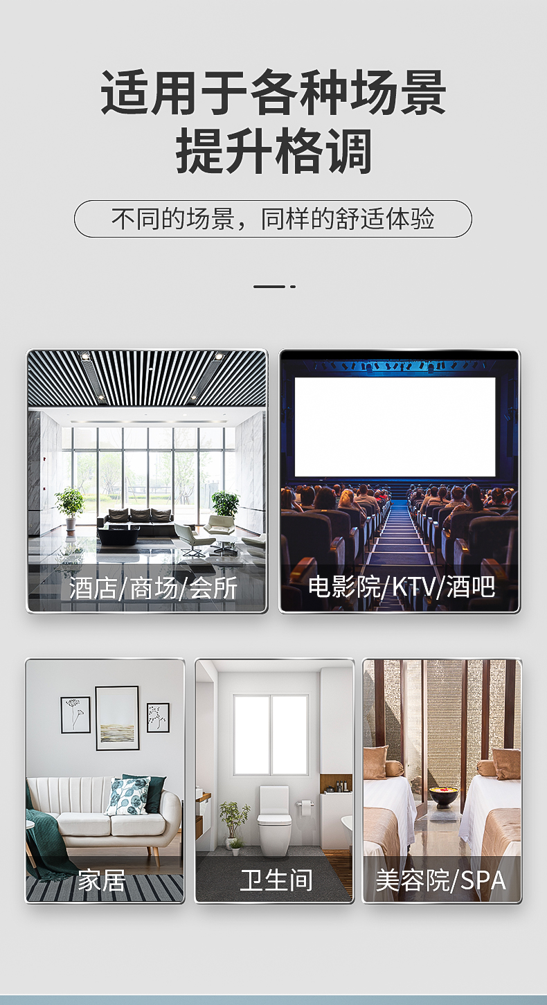 適用范圍:家庭、企事業(yè)單位、贈(zèng)品、福利(備有禮品裝)、辦公室、衛(wèi)生間、星級(jí)酒店、賓館、娛樂(lè)場(chǎng)所、寫(xiě)字樓、美容院、攝影樓、火車、汽車車廂、候車室、會(huì)議室、大廳、工廠、醫(yī)院、夜總會(huì)、寫(xiě)字樓、桑拿城、營(yíng)業(yè)廳、咖啡廳、茶酒樓、接待室、網(wǎng)吧等健身娛樂(lè)中心等人口密集和需要增添清香的地方。