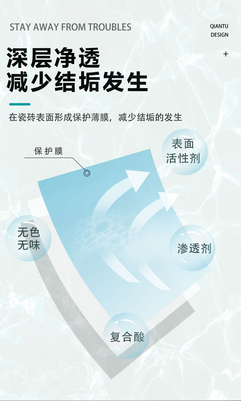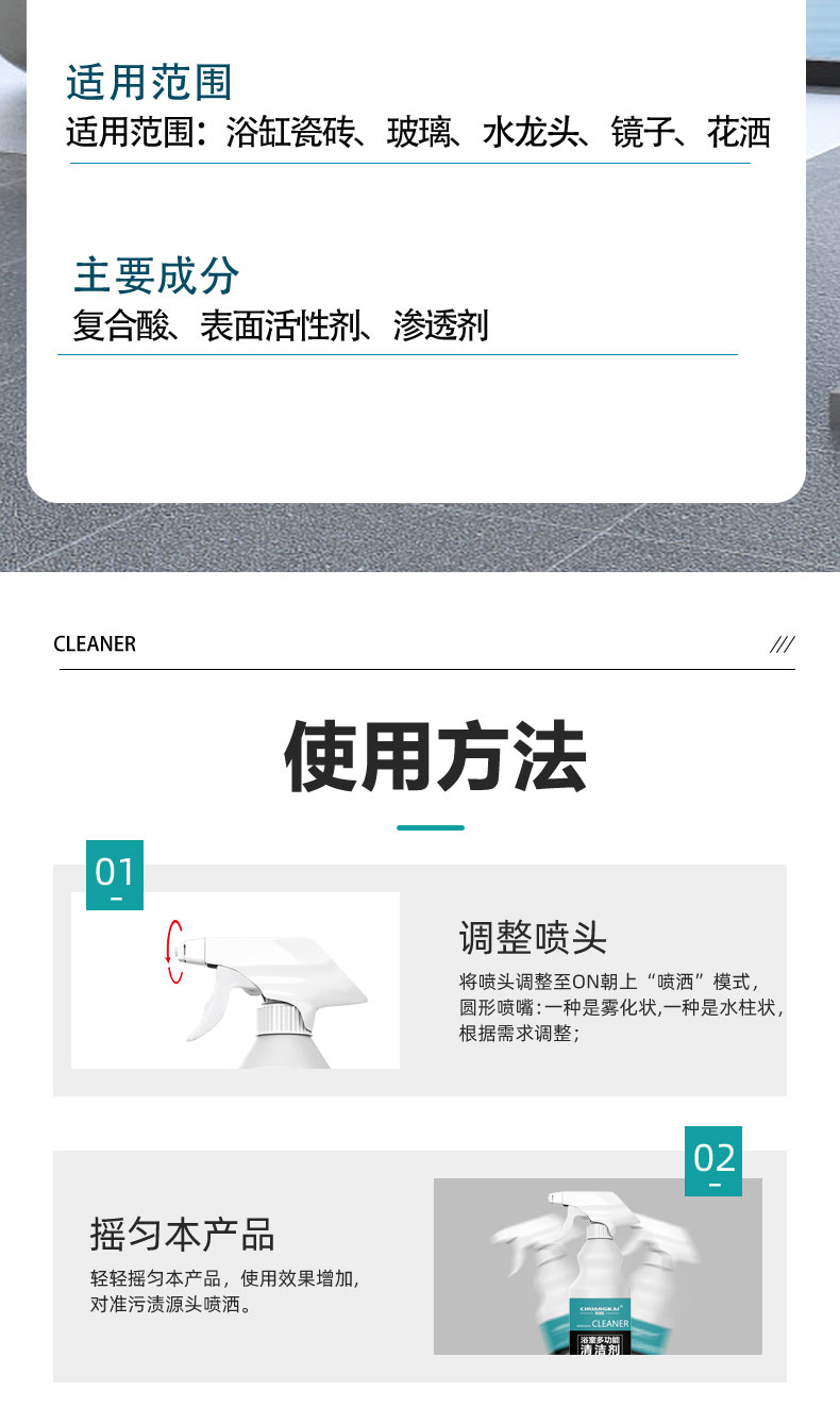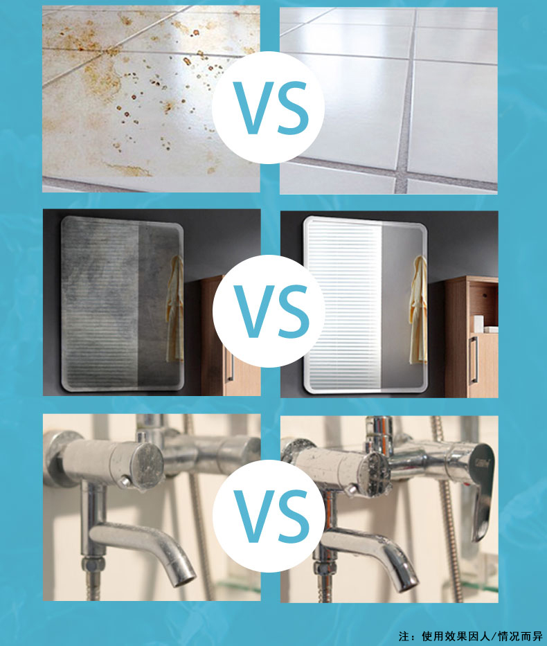 適用范圍:浴缸瓷磚、玻璃、水龍頭、鏡子、花灑