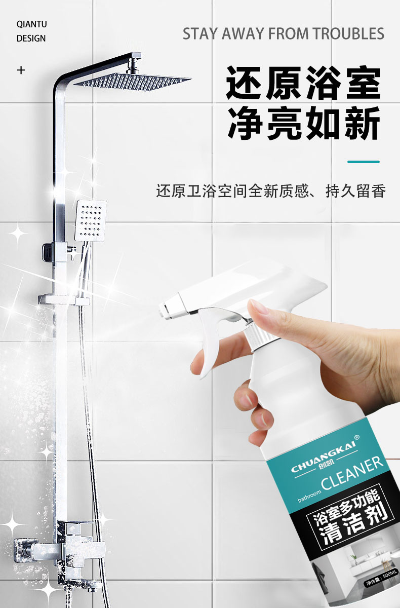 適用范圍:浴缸瓷磚、玻璃、水龍頭、鏡子、花灑