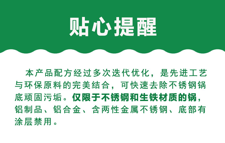 適用范圍:不銹鋼和生鐵材質(zhì)鍋