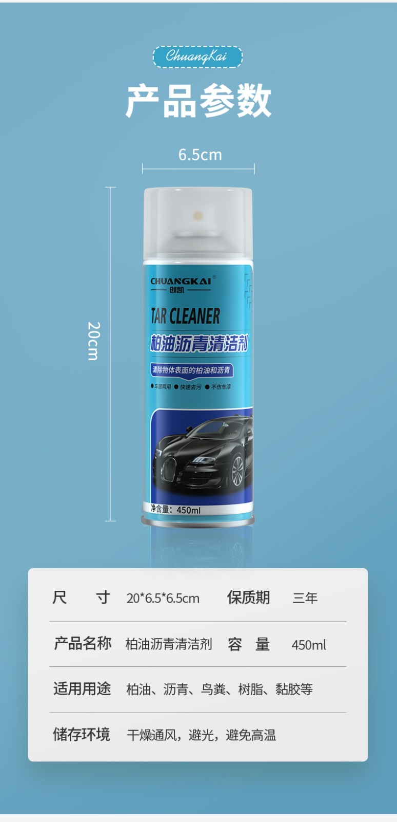 產(chǎn)品規(guī)格:20*6.5*6.5cm